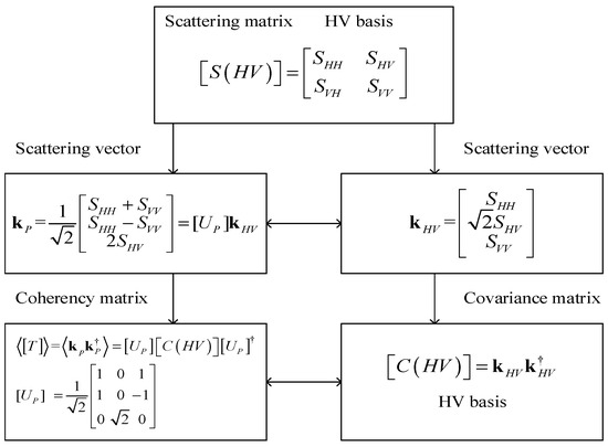 In a POLSAR measurement system, each pixel can be represented by a 2 × 2 complex scattering matrix [30]. The expression is as follows [31].