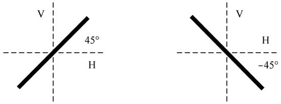 The scattering characteristics of an oriented dipole depend significantly on the target orientation with respect to the polarization coordinate system. Suppose we have two dipoles which are oriented at 45° and −45° against each other, as illustrated in Figure 3. The corresponding scattering submatrices are given in the following equations: