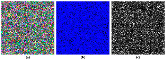 In order to analyze the relationship between the power proportion of each decomposition component and PPLA weight, the experiments were carried out on the simulated data in scene CKTG. The visualization decomposition results are presented in Figure 10 and Figure 11. Scattering powers are color-coded, with red representing , green representing , and blue representing . Figure 10a shows the Pseudo-Color image of targets; Figure 11a shows the Pseudo-Color image of clutter; Figure 10c and Figure 11c intuitively show the decomposition result of scattering power . In Figure 10 and Figure 11, as can be seen, the distribution of clutter and targets is different, which means we can perform the component’s power comparison and weight analysis.