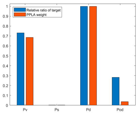 Figure 12 reveals the relationship between the normalized relative ratio of targets and the normalized PPLA weight in the simulation data. The specific values are listed in Table 5. It can be seen from Figure 12 and Table 5 that the larger the relative ratio of targets, the greater the weight of PPLA.
