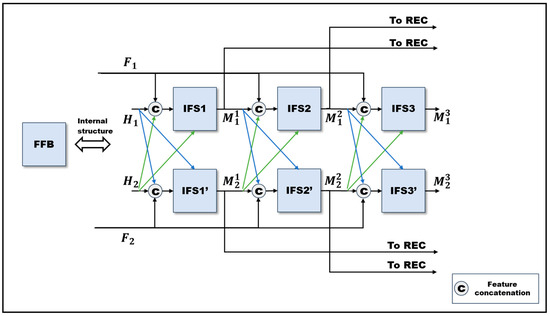 Table 2. The performance significantly declined when the network lacked the PFE. This underscores the critical role of the PFE as a fundamental component for primary feature extraction. Elements such as parallel multi-scale convolution feature extraction, multi-resolution training strategy, and high-frequency feature enhancement learning synergistically contribute, markedly enhancing the network’s feature extraction capabilities and establishing a robust foundation for subsequent processing steps. In the absence of the HFB, the performance remained suboptimal. Comprising multiple sets of deconvolutions and deformable convolutions with skip connections, this module effectively propagates low-level features to higher levels, facilitating the flow of feature information across different levels and providing the network with richer feature representation and learning capabilities. Similarly, the performance suffered when the FFB was omitted, indicating that inter-channel feature fusion contributes to the collaborative feature integration of the two subnetworks, resulting in improved outcomes. Ultimately, when all modules are combined, the entire network achieves optimal performance. This series of results provides profound insights into the unique contributions of each module within the network, offering robust support for a comprehensive understanding of network performance.