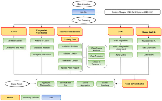 - Campbell, A.D.; Wang, Y. Salt marsh monitoring along the mid-Atlantic coast by Google Earth Engine enabled time series. PLoS ONE 2020, 15, e0229605. [Google Scholar] [CrossRef] [PubMed]