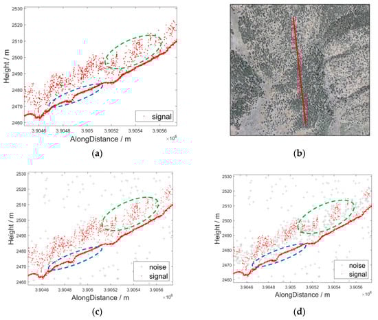 - Yang, P.F.; Fu, H.Q.; Zhu, J.J.; Li, Y.; Wang, C.C. An Elliptical Distance Based Photon Point Cloud Filtering Method in Forest Area. IEEE Geosci. Remote Sens. Lett. 2022, 19, 5. [Google Scholar] [CrossRef]
