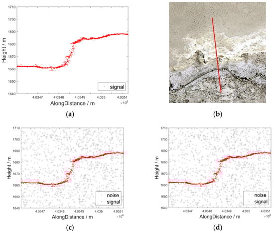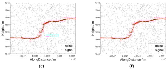 - Zhu, X.X.; Nie, S.; Wang, C.; Xi, X.H.; Wang, J.S.; Li, D.; Zhou, H.Y. A Noise Removal Algorithm Based on OPTICS for Photon-Counting LiDAR Data. IEEE Geosci. Remote Sens. Lett. 2021, 18, 1471–1475. [Google Scholar] [CrossRef]