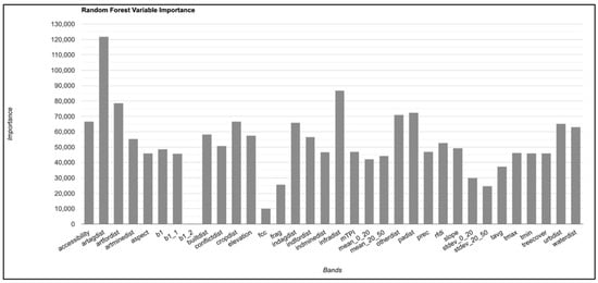 Variable importance in random forest model used to predict increased risk to intact forest resulting from randomly generated small-scale agriculture points. All image stack variables, including small-scale agriculture and infrastructure, are the variables in the image stack for which the prediction error would increase the most if they were removed from the model.