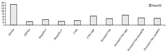 The number of parameters of all the models in the experiments is shown in Figure 11. It can be seen that the parameters of the proposed model are relatively large with a higher training cost []. However, the proposed model uses pre-training parameters that can make the model converge faster. Since a lightweight high-accuracy model would be more practical in production [], the model will be light-weighted with guaranteed accuracy to reduce training costs in future works.