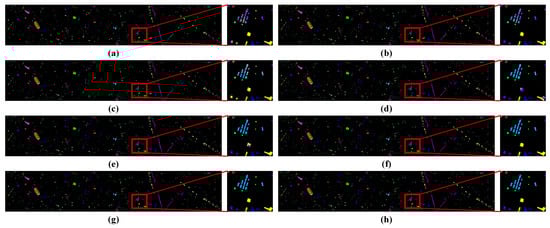 Classification maps of Indian Pines dataset. (a) SVM, (b) EMAP, (c) 1D-CNN, (d) 2D-CNN, (e) 3D-CNN, (f) HybridSN, (g) SSFTT, (h) Proposed.