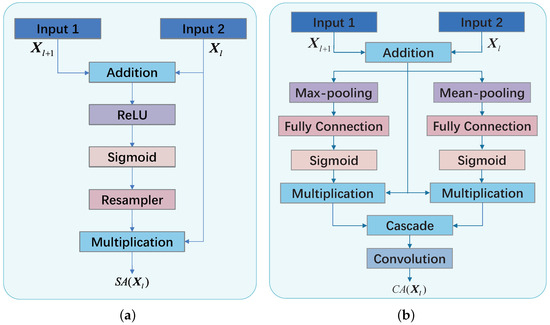 Schematic of the additive dual attention gate used in the proposed RAU-Net. (a) Spatial attention module. (b) Channel attention module.