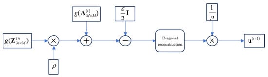 Similarly to the update layer of parameter , the update layer of parameter u in the network is determined by and , a more complex structure. According to the update rule in (16), we can design the structure of the update layer as shown in Figure 2.