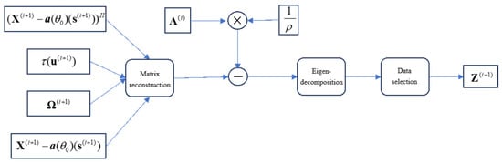The last parameter that needs to be updated also needs to be utilized by the matrix reconstruction, which will use all the four parameters that appear in the above update process. At this time, the parameter to be optimized is , and the update layer of parameter is shown in Figure 5.