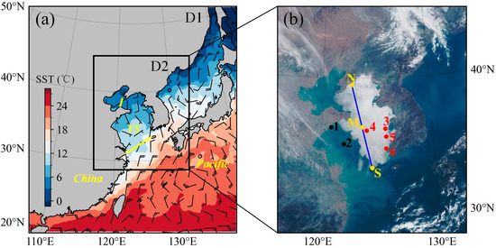 The eighth Himawari geostationary weather satellite (Himawari-8) is operated by the Japan Meteorological Agency (JMA) and can be accessed at: https://www.jma.go.jp (accessed on 1 March 2024). The CALIPSO (Cloud-Aerosol Lidar and Infrared Pathfinder Satellite Observation) satellite can be downloaded at https://asdc.larc.nasa.gov/data/CALIPSO (accessed on 1 March 2024). International Comprehensive Ocean-Atmosphere Data Set (ICOADS) can be downloaded at https://rda.ucar.edu/datasets/ds548.0 (accessed on 1 March 2024). The ERA5 data are archived by ECMWF (https://cds.climate.copernicus.eu/cdsapp#!/dataset/reanalysis-era5-pressure-levels (accessed on 1 March 2024)). The NEAR-GOOS SST data can be downloaded at http://ds.data.jma.go.jp/gmd/goos/data (accessed on 1 March 2024). Other data and codes for this study are available from the corresponding author upon reasonable request.