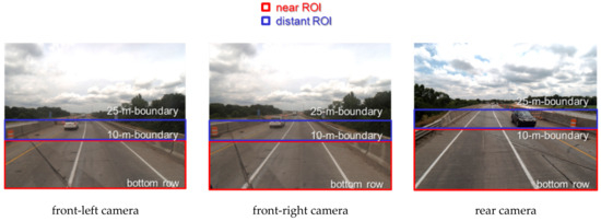 Near and distant ROIs for sample images captured by front and rear cameras onboard the PWMMS-HA.