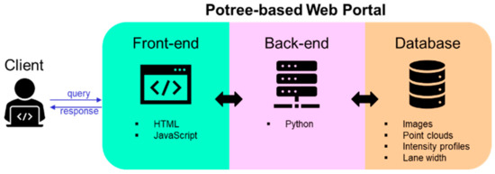 The image-aided LiDAR lane marking inventory framework section starts by describing the LiDAR-based, image-based, and image-aided LiDAR strategies. Subsequently, the developed Potree-based web portal is introduced.