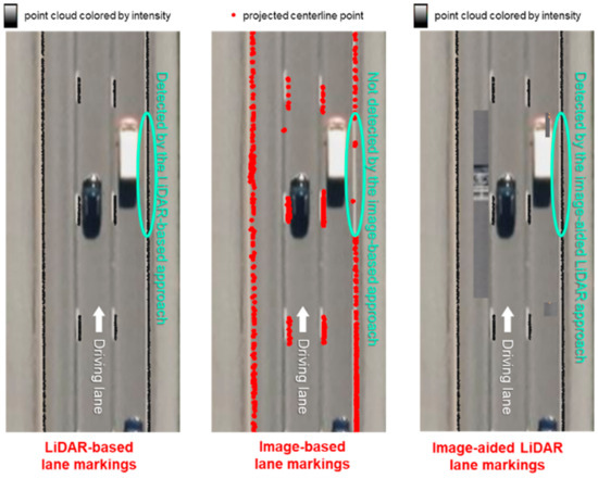 In summary, the image-aided LiDAR lane marking extraction achieves the best performance, followed by the LiDAR-based approach. The image information is particularly effective in compensating for the omission errors in the LiDAR-based approach. These findings align with the complementary nature of camera and LiDAR units emphasized in this study.