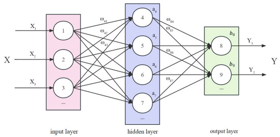 As an example of a single hidden layer of a BP neural network (Figure 2), the principle is as follows: