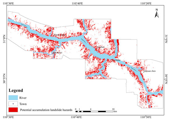 Prediction map of accumulation landslide hazards in the study area.