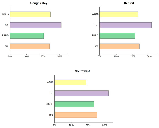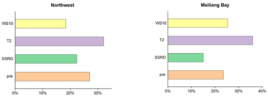 The aforementioned analysis underscores the interplay of various meteorological factors in influencing cyanobacterial blooms. However, these insights are contingent upon controlling variables. In the actual Taihu Lake ecosystem, the formation of cyanobacterial blooms is intricately linked to these meteorological factors, making it impractical to consider individual variables. The relative importance of each meteorological factor is seldom explored in existing research and is challenging to determine. Consequently, it is necessary to further elucidate the relative importance of each meteorological factor.