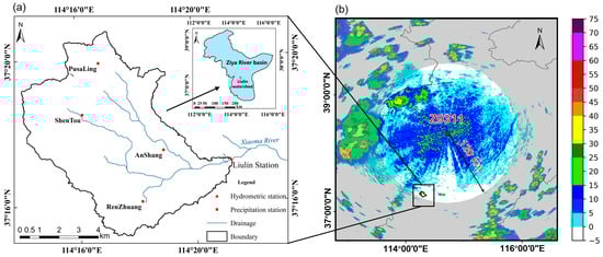 In recent years, extreme rainfall has led to frequent flooding as a result of climate change, natural variability, and human activity [1]. Accurate and timely rainfall nowcasting is the key to flood forecasting, which is critical to flood prevention and mitigation efforts [2,3]. Precipitation is typically measured by rain gauges, which have poor temporal and spatial representativeness and struggle to capture the regional variability of rainfall [4], thus affecting the forecasting accuracy of rainfall-runoff models [5]. For rainfall nowcasting based on radar echo extrapolation by tracking the trend of radar echo reflectivity maps, the relationship between radar reflectivity and rainfall intensity is utilized to achieve the rainfall nowcast for the next 0–2 h in localized areas [6]. Coupling the results of rainfall nowcast with hydrological forecasting can extend the runoff forecasting lead time [7]. Because of the high accuracy and timeliness requirements, precipitation nowcasting has emerged as a popular research topic in the hydrometeorology community [8].