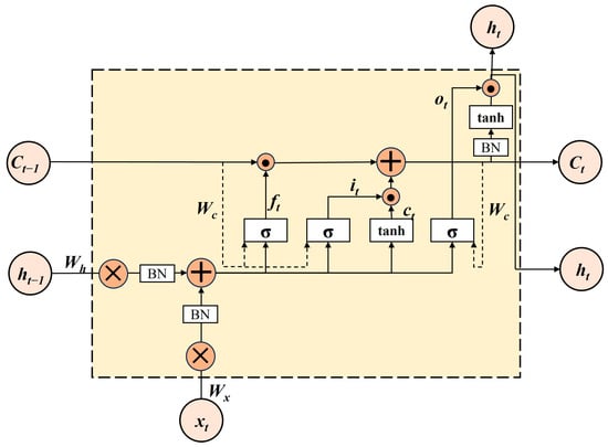 where ‘°’ denotes the Hadamard product, ‘*’ denotes the convolutional operator, ‘σ’ represents the sigmoid activation function, it denotes the input gates, ft denotes the forgetting gates, ot denotes the output gates, ct denotes the current state of the moment, ct−1 denotes the status of the previous moment, ht denotes the final output, W denotes weight coefficient, and b denotes the corresponding bias coefficient.