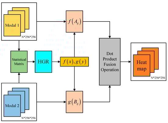 where f(x) represents modal 1 in each pixel position, g(y) represents modal 2 in each pixel position, and H represent the nonlinear correlation between the pixel points in modal 1 and modal 2 images.