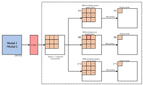 where , , and are HGR cross-correlation positive, zero, and negative sample matrix maximum pooling results, respectively. The HGR cross-correlation pooling process is shown in Figure 5.