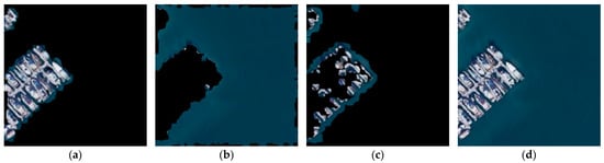 To demonstrate information integrity throughout the processing stages, an information traceability experiment was conducted using images in three distinct forms: positive, negative, and zero. The experiment aimed to retrieve the original images based on these three forms. This part of the experiment involved six sets of tests, three with optical images and three with SAR images. The results are illustrated in Figure 10, Figure 11, Figure 12, Figure 13, Figure 14 and Figure 15. In these figures, (a) represents the positive image, (b) the negative image, (c) the zero image, and (d) the target traceability result image. From Figure 10, Figure 11, Figure 12, Figure 13, Figure 14 and Figure 15, it can be observed that the traced images are consistent with the original images, with no information loss. This indicates that the proposed algorithm maintains information integrity throughout the processing stages, ensuring that no information is lost.