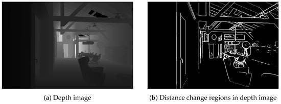 The goal of this section is to detect the positions of abrupt changes in distance in the depth image, i.e., locations at which the depth values of adjacent pixels vary significantly. This objective is similar to edge detection in ordinary images; therefore, this paper adopts an edge detection approach.