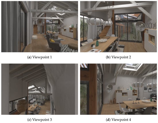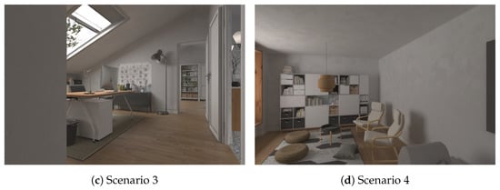 To explore the robustness of the proposed loop closure detection method to changes in viewpoint, the living room scene from the Apartment dataset was selected as the validation object. This scene exhibited rich changes in viewpoint, as shown in Figure 11. Using Figure 11a as the reference frame, its similarity to other images was detected. Figure 12 shows some scenarios that are prone to false positives. Additionally, since adjacent frame images usually have high similarity, and the reference frame was the first frame in the dataset, similarity evaluation was not performed on the first 300 frames of the dataset.