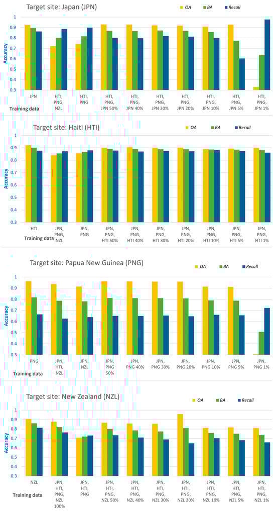 Hence, our novel approach provides a significant contribution to RS-based landslide detection, which we illustrate using four different case studies on coseismic landslides caused by 6.6–7.5 magnitude earthquakes that occurred across the globe between 2016 and 2021. The remaining content of this manuscript is structured as follows: Section 2 introduces the study area, provides details on the satellite imagery datasets used, and explains in detail the workflow of our proposed approach that includes multi-sensor imagery fusion, ML-based landslide detection, experimental settings, and used evaluation metrics. Section 3 will present the results and Section 4 will discuss the results and provide insights into the detection accuracies of existing solutions compared to our solution; discuss the performance of different ML classifiers; explain the importance of each sensor band; compare TOA vs. SR as part of the detection solution; discuss space transferability; present the conclusion and explore future possibilities.