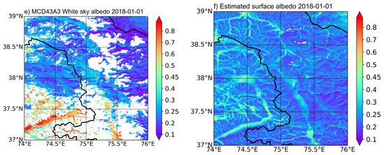 Despite using 16 days of accumulated surface reflectance data, it is at times not possible to gather the sufficient clear-sky multi-angular observations of surface reflectance to fulfill the minimum requirements of the BRDF model due to cloud coverage [13]. From 2000 to 2009, annually, approximately 20% to 40% of global land pixels lack daily valid retrievals sufficient to meet the requirements of the BRDF model [14]. Particularly in the Tibetan Plateau region, the MODIS albedo product struggles to gather sufficient valid retrievals. Due to cloud cover, atmospheric contamination, sensor malfunction and variations in surface topography, there are many gaps in the land surface albedo data set [9,15].