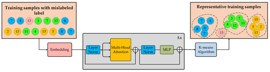 The crucial role of RTS has been widely acknowledged by researchers [61,62,63,64,65]. The proposed transformation procedure of RTS is illustrated in Figure 22. Firstly, the detected mislabeled samples were fed into the ViT model to extract depth features. Subsequently, using the k-means clustering algorithm, these noisy samples were supervised and transformed into RTS.