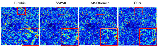 Error maps of the test HSIs in the Houston dataset at the scale factor ×4.