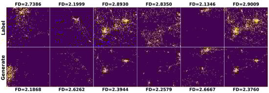 Figure 7 and Figure 8 show some bad samples of generation targets that were significantly different from the corresponding labels. As shown in Figure 7, the fractal dimensions of the bad samples that were generated via the first aggregation method were significantly lower than those of the corresponding labels. As shown in Figure 8, the fractal dimension of the bad samples that were generated via the second aggregation method had the opposite trend to those of the corresponding labels, which were relatively small when the fractal dimension of the labels was relatively large, and vice versa.