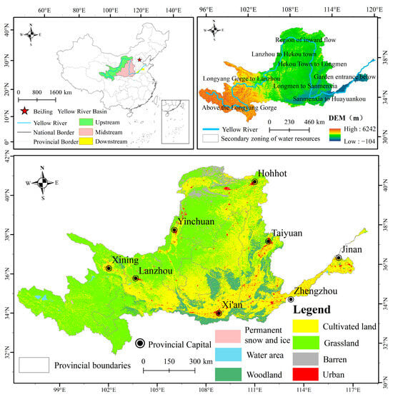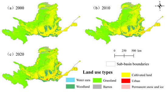 Spatial distribution of land use in the Yellow River Basin, 2000–2020.