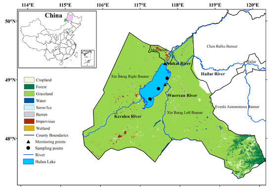 - Liang, L.; Li, C.; Sun, B.; Wang, J.; Han, Z. Impact Factors and Characteristics of Water Quality Variation of Hulun Lake in Inner Mongolia Automous Region. Bull. Soil Water Conserv. 2017, 37, 102–106. [Google Scholar]