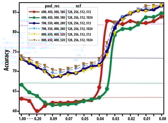 For feedforward neural networks, the time complexity is typically , where n is the number of inputs; m is the number of neurons in the largest layer; and l is the number of layers, as in the case expressed in Equation (11). This assumes that each neuron has a constant time complexity for processing inputs and computing the output. The time complexity for training a deep neural network can be much higher, as it involves computing the gradients of the loss function with respect to the model parameters and updating the parameters based on the gradients. This process is typically repeated multiple times for different batches of the training data until convergence.
