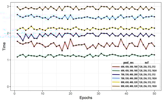 Figure 7 (we took fifty epochs) shows the time complexity of GeoSparseNet compared to various and . Hereunder’s Big- notation was employed to calculate the GeoSparseNet run-time complexity by simply omitting as a directive of 1, where denotes time.