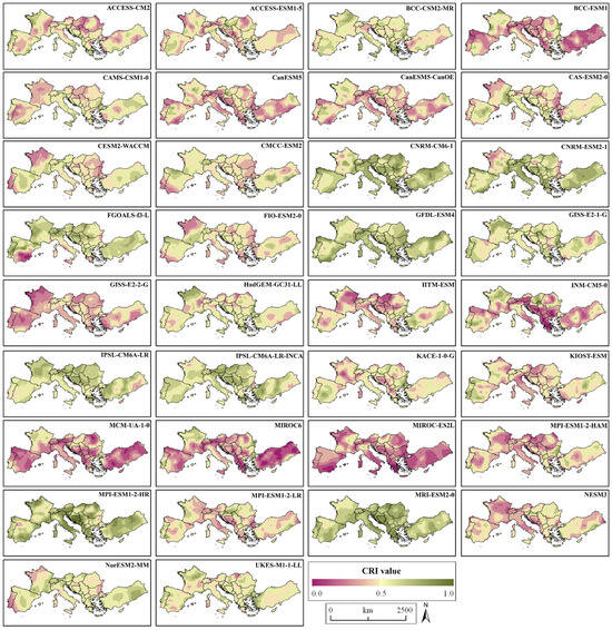 Geospatial analysis of the 34 GCMs in the Euro-Med region through the Comprehensive Rating Index (CRI).