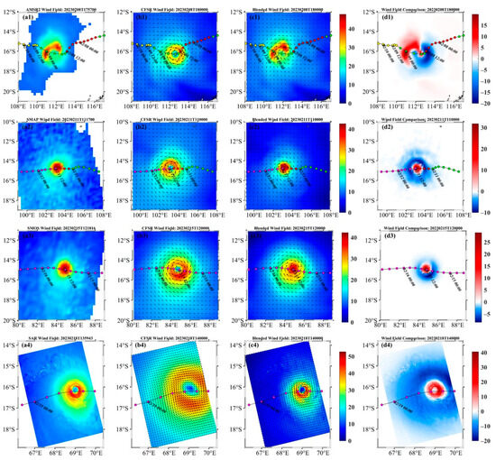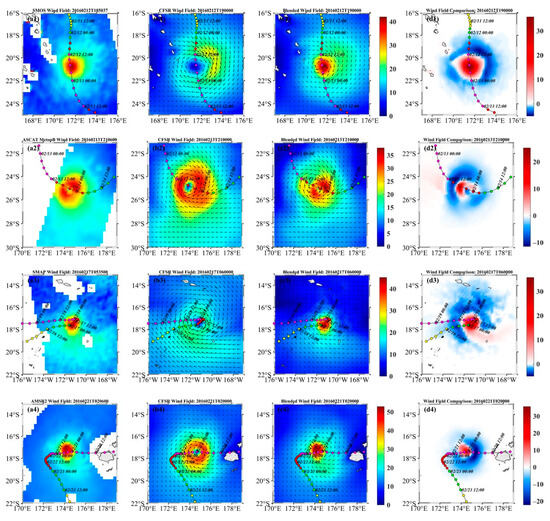 - Meissner, T.; Ricciardulli, L.; Manaster, A. Tropical Cyclone Wind Speeds from WindSat, AMSR and SMAP: Algorithm Development and Testing. Remote Sens. 2021, 13, 1641. [Google Scholar] [CrossRef]