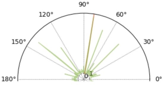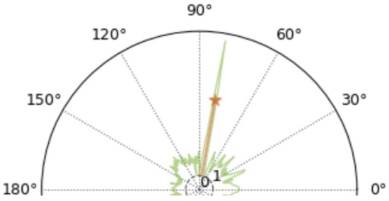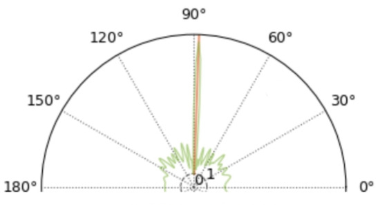 We label the proposed algorithms as PCNN because of the length of the figure, 5000 L means the audio length is 5000 in the figure example, and so on. From Figure 11, all three algorithms are consistent with the performance of “the shorter the audio length, the worse the noise immunity”. We know that when the number of FFT points is fixed and larger than the signal length, the longer the signal length corresponds to the higher spectral resolution. As can be seen from the comparison in Figure 12 and Figure 13, when the length of the audio is shortened to 500 dots, there are also a very large number of spikes in directions other than the correct DOA, all of which are noise.