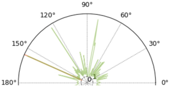 Since the signal-to-noise ratio of the field environment is difficult to control artificially, we utilize the acquired UAV acoustic signal and the pure environmental noise signal. The pure noise signal is amplified in MATLAB and mixed into the UAV noise signal to achieve a signal-to-noise ratio of −8 dB. The same 50 s UAV acoustic signal is localized again, and the results are shown in Figure 23.