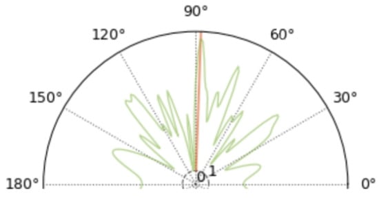 Figure 3 and Figure 4 shows the improvement of the normalized mean for the MUSIC spatial power spectrum spikes. In this simulation, the receiving array is a binary microphone line array with a spacing of 0.5 m between the array elements, and the source is 10 m away from the array. The source signal is an audio sample of a drone noise from the [18] dataset, with an incoming wave direction of 80°, additive noise, and a signal-to-noise ratio of 0 dB. In Figure 3, the sharpest peak is in the 80° direction, however, there is also a sharper peak in the 140° direction and three more distinct peaks in other directions. Next, the signal-to-noise ratio is further reduced and the other parameters are kept constant and the simulation is performed again.