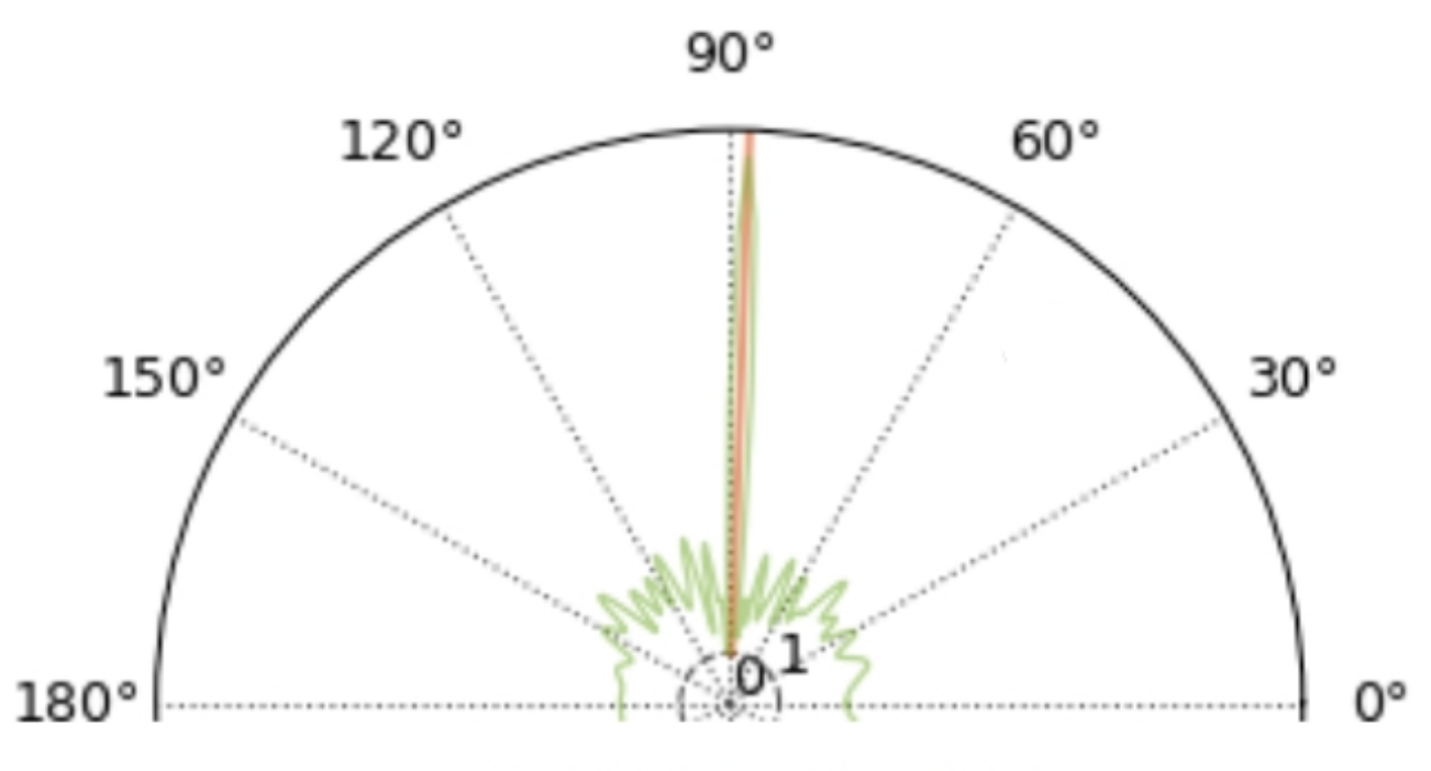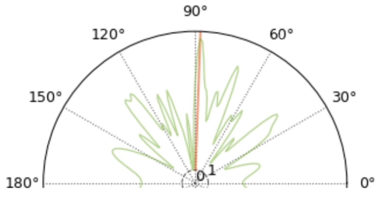 - The frequency axis of the total pseudo-spectrum is converted to an angular axis using for spectral peak search.