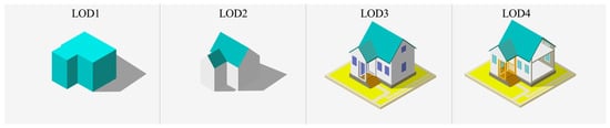 Five levels of detail in CityGML [Reprinted/adapted with permission from Ref. []. 2022, MLIT Japan].