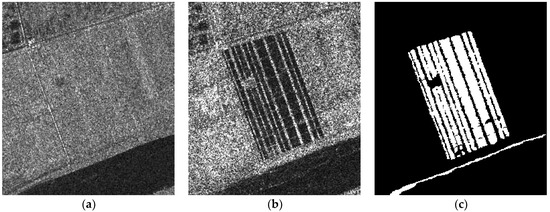 Ottawa dataset. (a) image acquired in May 1997; (b) image acquired in August 1997; (c) reference.