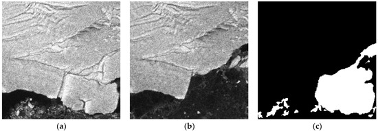 Sulzberger Ice Shelf dataset. (a) image acquired on 11 March 2011; (b) image acquired on 16 March 2011; (c) reference.