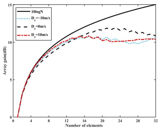 The array gain is defined as the ratio of the SNR after array processing to the SNR on a single element, and the formula is as follows: