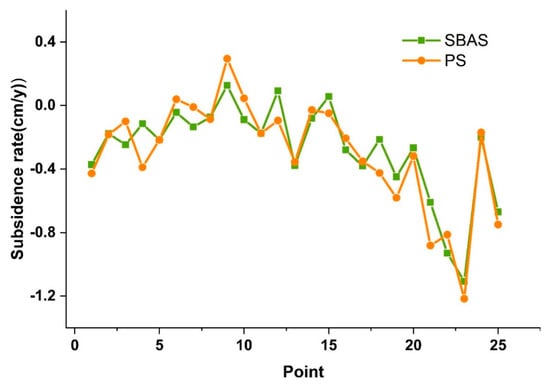 Result of PS−InSAR and SBAS−InSAR cross−validation.