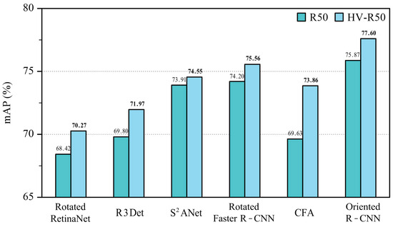 Experimental results on the HRSC2016 dataset. Replacing the backbone with HV-R50 to validate the effectiveness on various architectures.