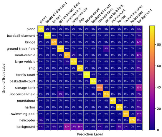 The confusion matrix result of multi-scale training on the validation set from the DOTA-v1.0 dataset.